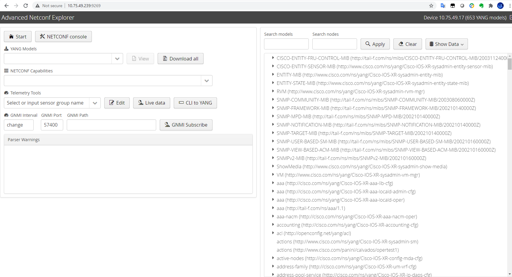 ANX(Advanced NETCONF Explorer) 是一个 cisco 开源软件, 发布如下 github 上,能帮助我们快速的查找一些 sensor path, 做一些 telemetry 的实验, 具体的安装步骤可参考 github 主页。