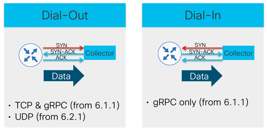 Telemetry 分为两种模式 Dial-Out/Dial-In, 之前文章 Telemetry simple configuration in Cisco XR devices 介绍了 Dial-Out 的模式, 设备按一定的频率 pull 数据到 server, 以下是一个 Dial-in 的配置案例:(server 只去订阅自己感兴趣的数据)