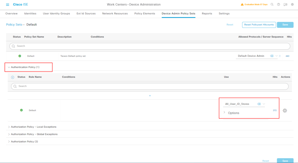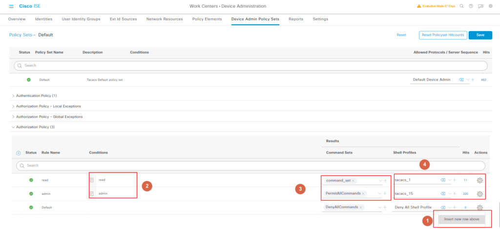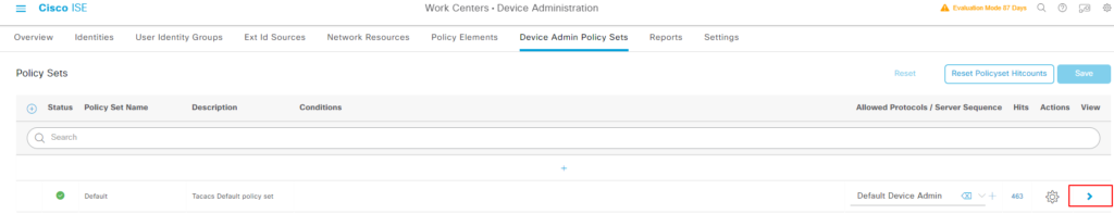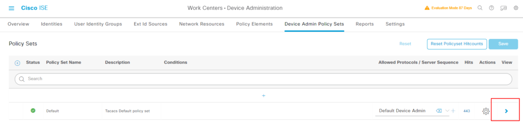 Work Centers -> Device Administration ->Device Admin Policy Sets -> Policy Sets