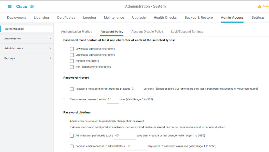 Administration-> Identity Management -> Settings ->User Authentication Settings ->Password Policy