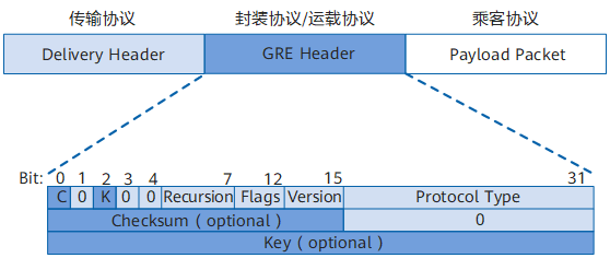 通用路由封装协议 GRE(Generic Routing Encapsulation)可以对某些网络层协议(如 IPX、ATM、IPv6、AppleTalk 等)的数据报文进行封装(区别于 IPsec, IPsec 只能封装 IP 数据包),使这些被封装的数据报文能够在另一个网络层协议(如 IPv4)中传输。
