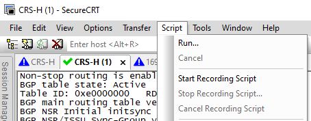 SecureCRT 本身提供一种录制脚本的功能,可以通过录制脚本得到一个示例, 然后在此基础进行更改, 得到自己想要的脚本。